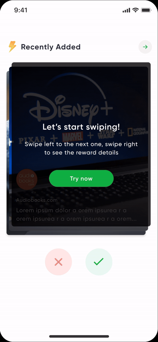 Brand new swipe engagement gesture to interact with recently added rewards.