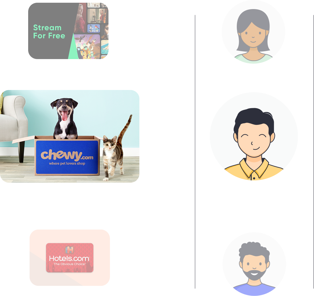 All reward sub-types were interwoven in a smart feed, showing a personalized mix of Rewards, Raffles, Donations, and Gift Cards based on user activity, preferences, and engagement history.